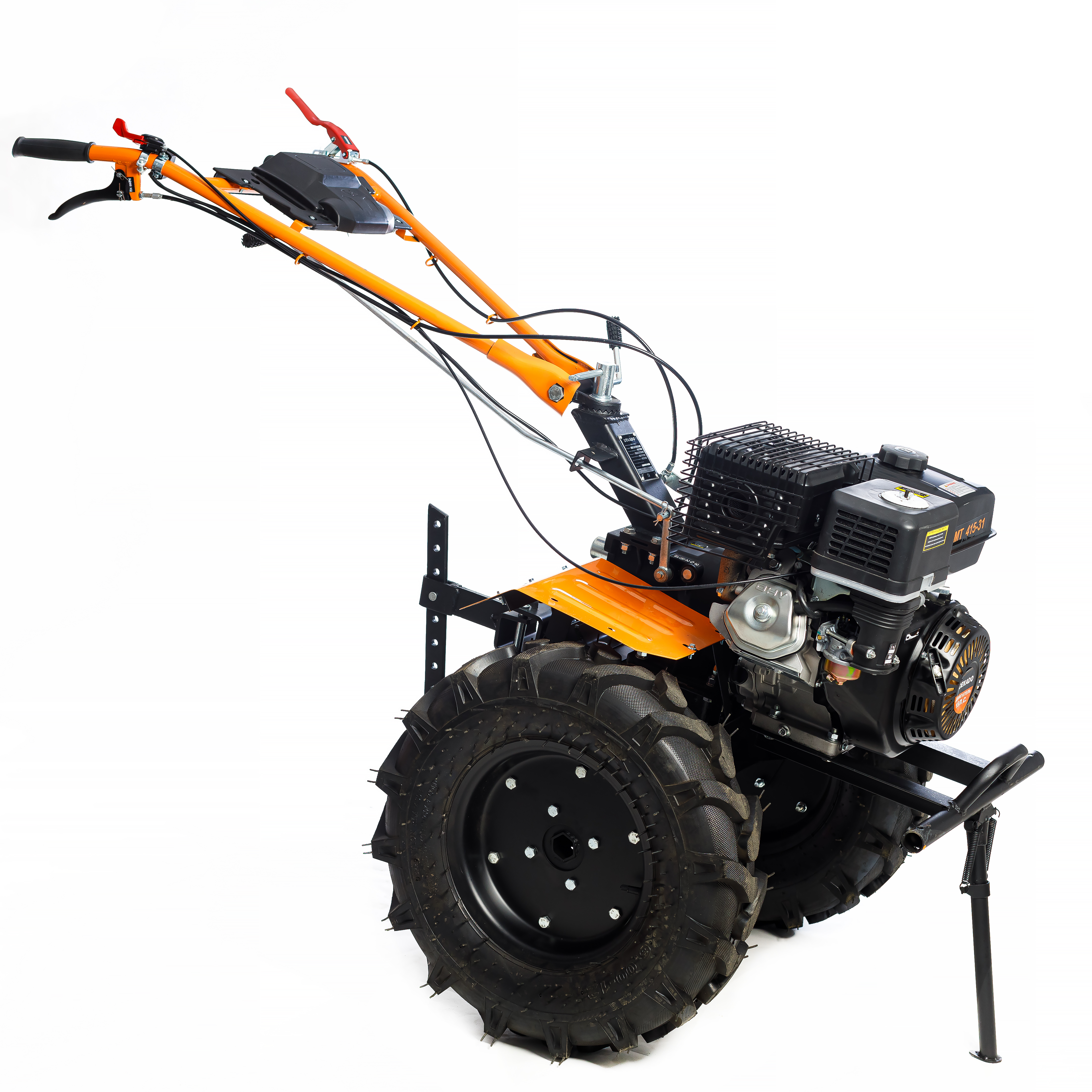Данная модель имеет вал отбора мощности. Наличие трех скоростей и задний ход, удобное переключение механической коробки передач в процессе обработки почвы, а их внушительный вес самих агрегатов помогает достичь оптимальной глубины вспашки почвы и эффективности работы. Энергоемкий и напористый 4-х тактный бензиновый двигатель прекрасно справляется с поставленными задачами по возделыванию почвы. Он экономичен, обладает высоким моторесурсом. Трехступенчатая шестеренчатая коробка передач и легкий запуск при температурах от -2 до + 40°С обеспечит комфорт и простоту в работе.
