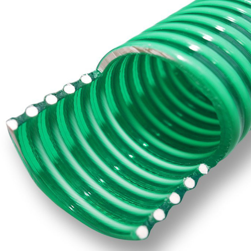Данный вид шланга применяется в качестве гибкого трубопровода при всасывании, нагнетании и сбросе жидкостей, к которым материал шланга химически стоек, в том числе жидких не пищевых продуктов. Шланг снаружи ребристый, внутри гладкий. Напорно-всасывающий шланг производят из пищевого пластифицированного поливинилхлорида PVC, армированного ударопрочной спиралью из PVC. Данный вид шланга довольно сложно скрутить, обратите на это внимание при приобретении шланга. Не содержит вредных веществ (Cd, Ba, Pb). Выдерживает давление до 7 бар. Рабочая температура от -30°С до +40°С. Благодаря высоким качественным показателям этот вид шланга имеет высокие эксплуатационные характеристики!