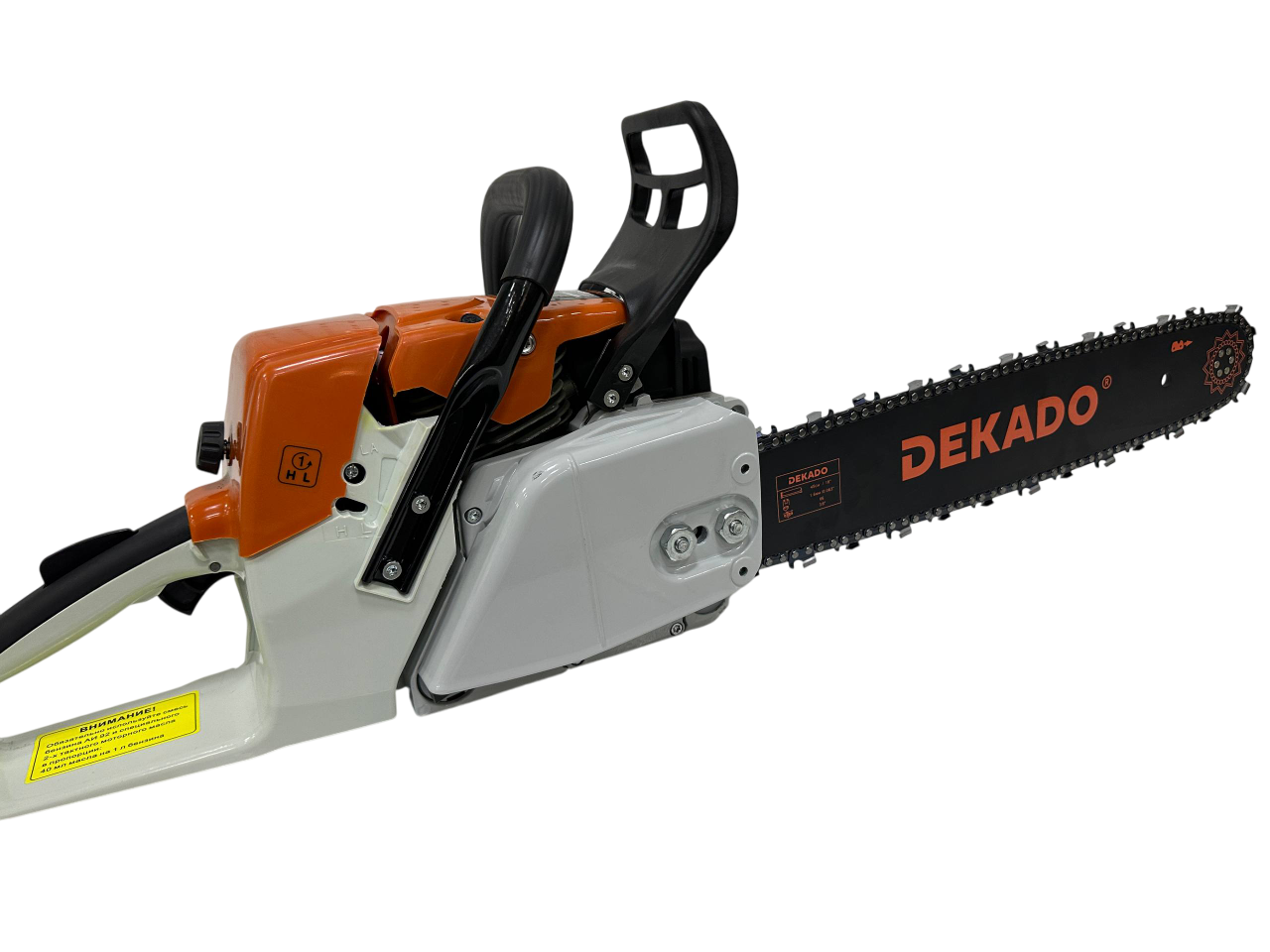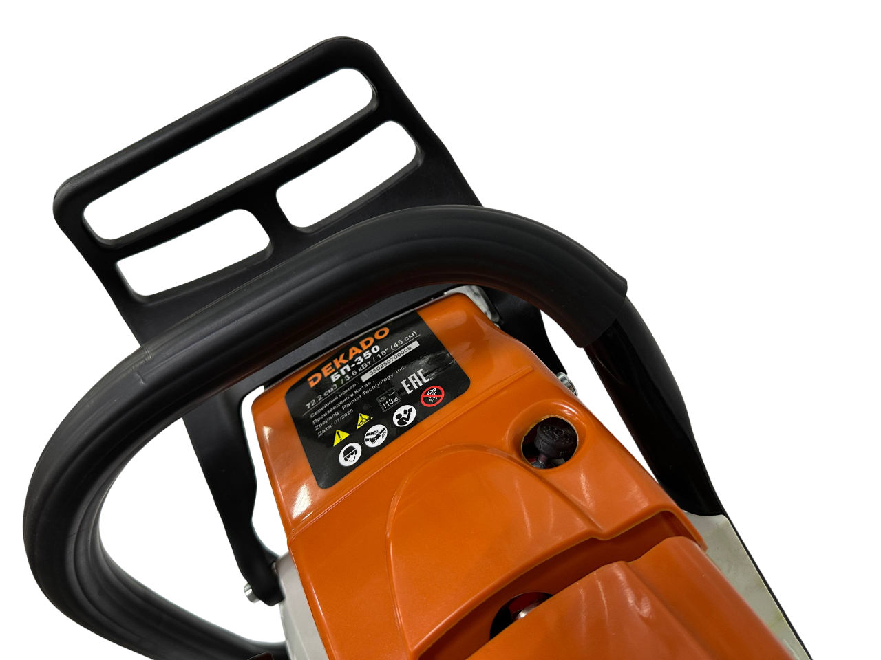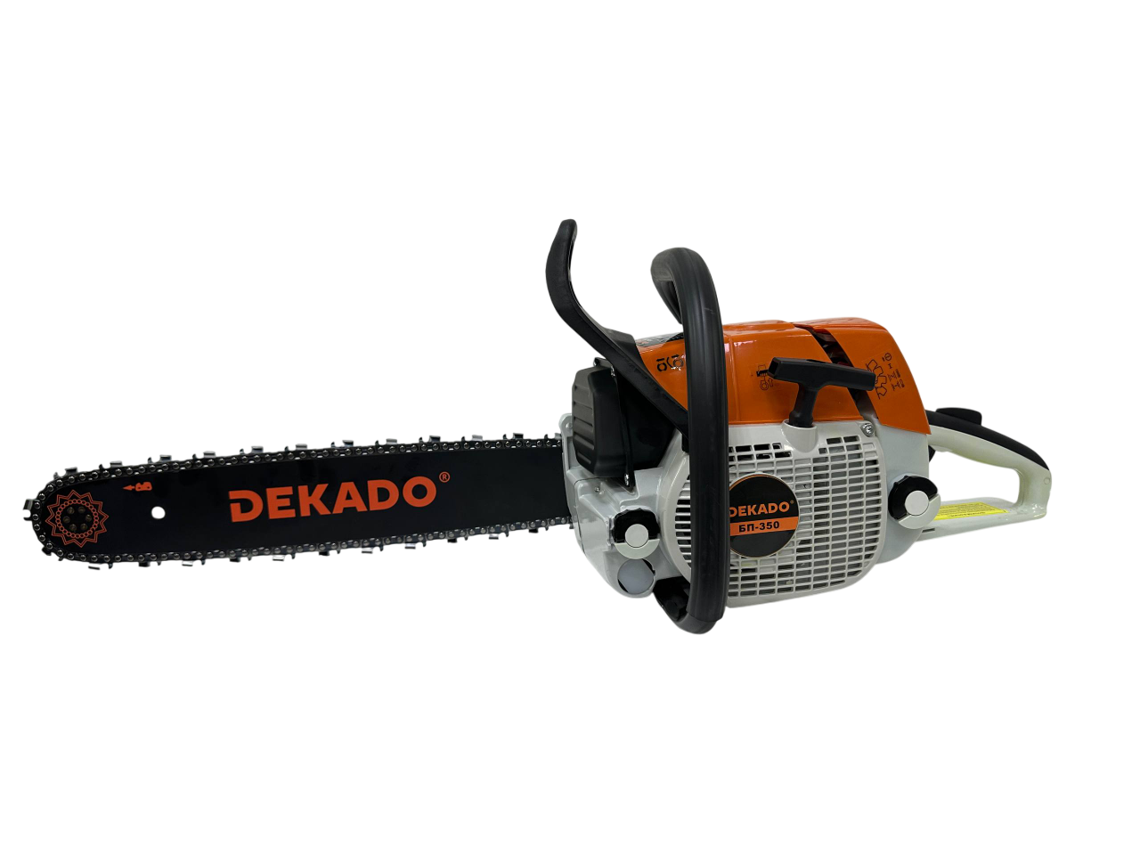 Мощная, обновленная бензопила БП 350 DEKADO с системой декомпрессии. Высокопроизводительный инструмент, для экстремальных нагрузок. Отлично подходит для валки, раскряжевки деревьев, заготовки дров, а также выполнения других строительных работ в бытовых условиях. Бензопила БП 350 DEKADO имеет автоматическую, регулируемую, принудительную систему смазки пильной цепи и оснащена декомпрессионным клапаном, который при запуске двигателя выпускает часть сжатой смеси из цилиндра. В результате требуемое усилие тяги на пусковом тросе заметно снижается. Оператору становится легче работать, и вся система пуска менее интенсивно изнашивается. Бензопила БП 350 DEKADO отличается своей надежностью и проверенной конструкцией.