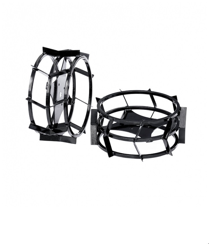Грунтозацепы Valrus «Профи» предназначены для улучшения сцепления мотоблока с почвой при выполнении тяжелых работ, таких как вспашка, рыхление почвы, окучивание и др. Металлические грунтозацепы состоят из узких обручей профильной трубы квадратного сечения с толщиной стенки 2 мм и шипов/зацепов высотой 30 мм, которые надежно сварены между собой. Расстояние между обручами позволяет свободно проходить между ними даже влажной почве, благодаря чему грунт не налипает на конструкцию и дополнительно разрыхляется, что облегчает работу мотоблока. Крепление к мотоблоку осуществляется при помощи ступиц с разболтовкой 4/110 на шестигранные либо круглые валы редуктора. В комплекте 2 штуки.