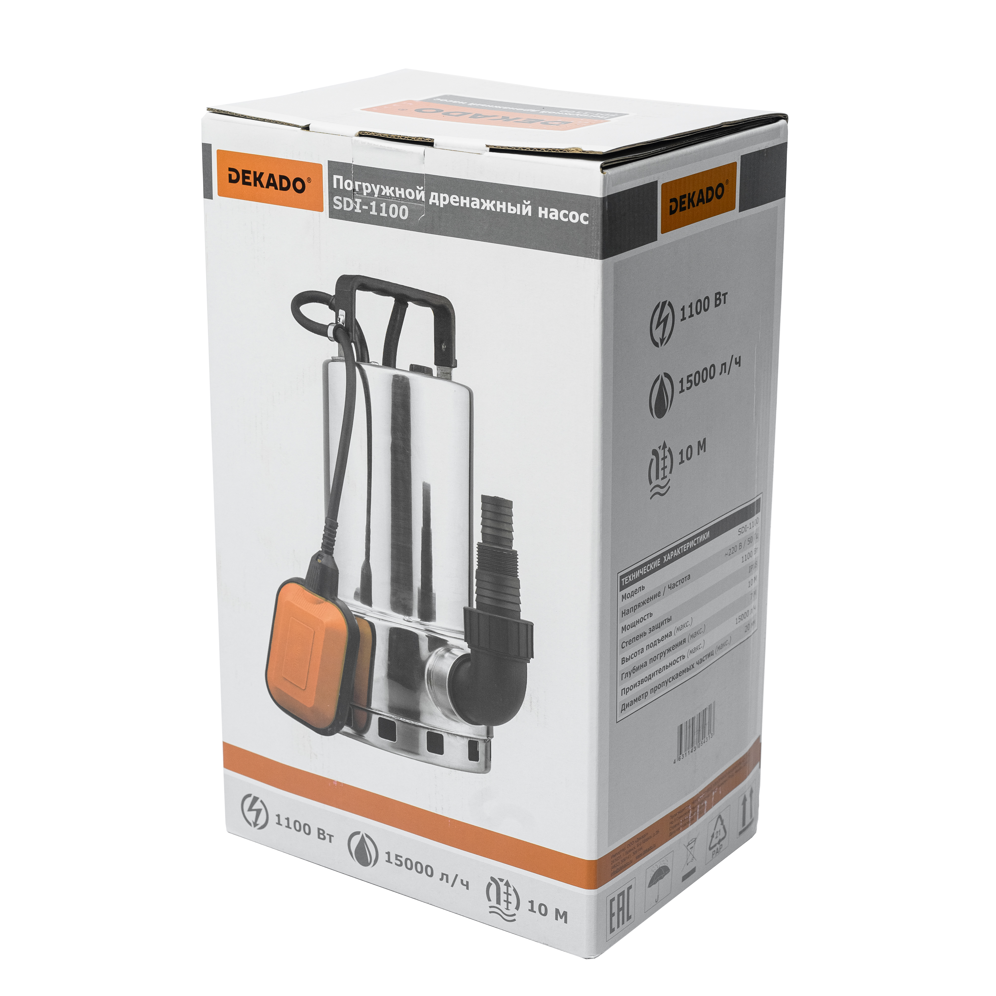 Кроме того, насос может применяться для орошения садов и огородов, подачи воды из колодцев, открытых водоемов и источников. SDI-1100 DEKADO имеет металлический вал электродвигателя с алюминиевой обмоткой заключенный в корпус из нержавеющей стали. Насос предназначен только для бытового использования.