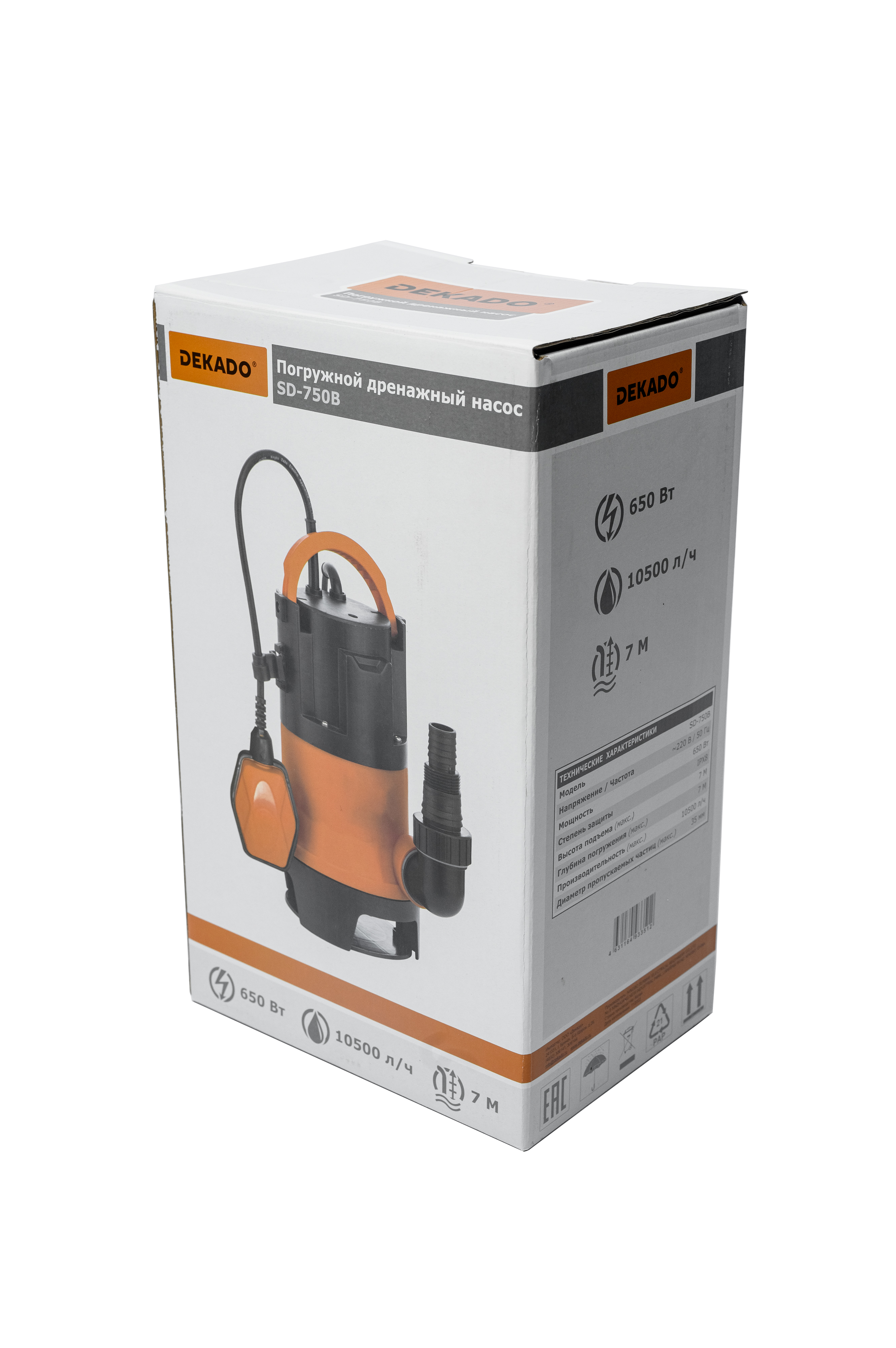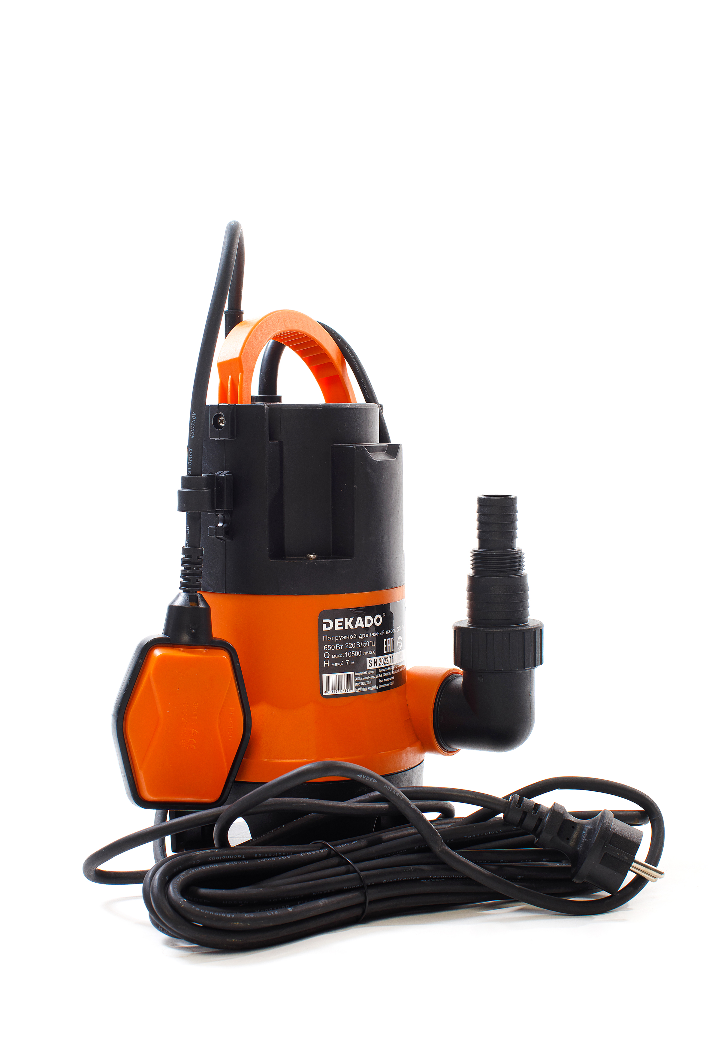 Насос погружной дренажный SD-750B DEKADO предназначены для отведения дренажных, дождевых, грунтовых, талых и сточных вод из дренажных, коллекторных и фильтрационных колодцев, садовых прудов, сточных канав, бассейнов, затопленных подвалов и шахт, как в ручном, так и в автоматическом режиме. Кроме того, насос может применяться для орошения садов и огородов, подачи воды из колодцев, открытых водоемов и источников. SD-750B DEKADO имеет металлический вал электродвигателя с алюминиевой обмоткой заключенный в корпус из пластика. Насос предназначен только для бытового использования.