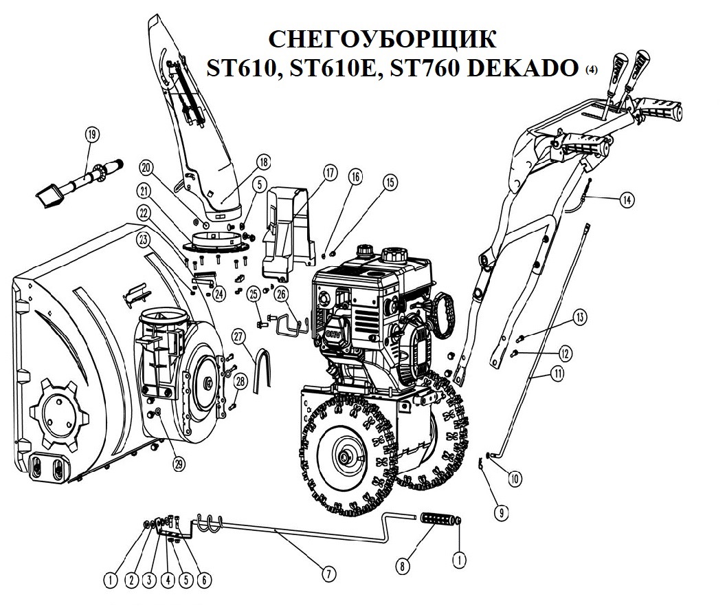 Снегоуборщик ST760E DEKADO предназначен для уборки снега с дорог, тротуаров, а также на территории загородного дома и дачи. Протектор шин снегоуборщика ST760E DEKADO способствует эффективному сцеплению с поверхностью даже при работе на обледенелых участках. Снегоуборщик оснащен двухступенчатым металлическим шнеком, который справляется с плотным снегом. Вращающиеся детали изготовлены из прочного металла - стали, устойчивого к механическому воздействию. Это обеспечивает качественный результат при работе и продлевает срок службы снегоуборщика. Направление отбрасывания снега регулируется в соответствии с индивидуальными потребностями с помощью рычага. На снегоуборщике установлена фара.